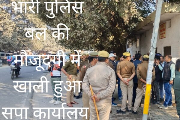 पीलीभीत में भारी पुलिस बल की मौजूदगी में सपा कार्यालय में रखा सामान निकाला गया वाहर।नगर पालिका ने लिया कब्ज़ा।