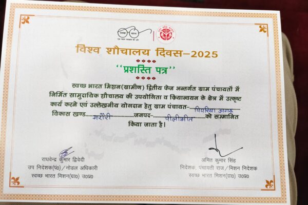 पीलीभीत की ग्राम पंचायत पिपरिया अगरु लखनऊ में हुई पुरस्कृत।