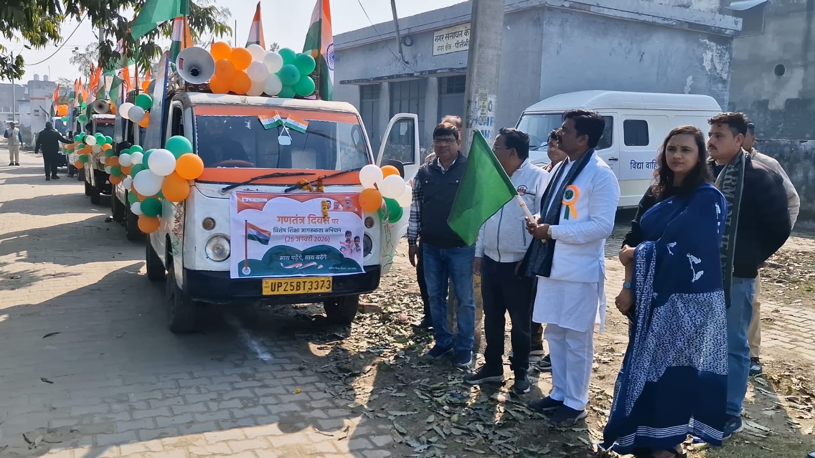 पीलीभीत। 77वें गणतंत्र दिवस के अवसर पर समग्र शिक्षा के अंतर्गत संचालित विभिन्न योजनाओं के प्रचार–प्रसार हेतु जिला बेसिक शिक्षा अधिकारी कार्यालय परिसर से जागरूकता वाहनों को भारतीय जनता पार्टी के जिला अध्यक्ष संजीव प्रताप सिंह एवं जिला बेसिक शिक्षा अधिकारी रोशनी सिंह ने संयुक्त रूप से झंडी दिखाकर रवाना किया। इस अवसर पर जिला अध्यक्ष ने कहा कि वर्तमान सरकार शिक्षा सहित सभी विभागों में जनकल्याणकारी योजनाएं संचालित कर रही है, जिनका लाभ सीधे आमजन तक पहुंच रहा है।