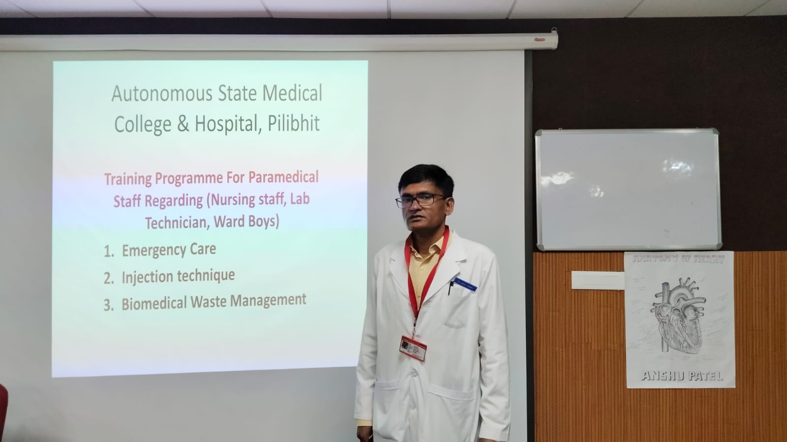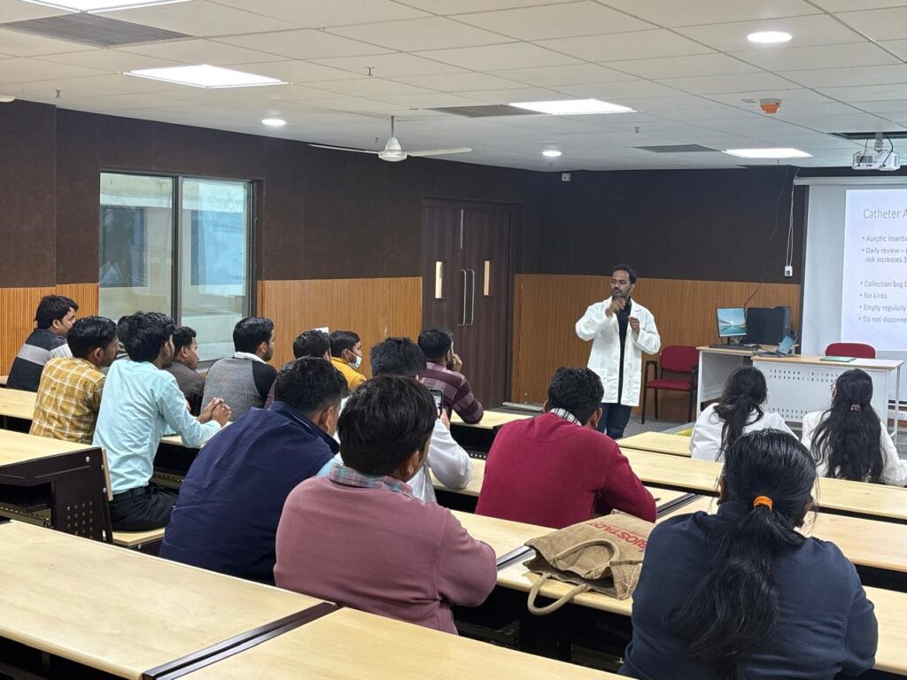 पीलीभीत।स्वशासी राज्य चिकित्सा महाविद्यालय पीलीभीत से संबद्ध चिकित्सालय में स्वास्थ्य सेवाओं को और अधिक सुरक्षित, गुणवत्तापूर्ण एवं संक्रमण-नियंत्रित बनाने के उद्देश्य से नर्सिंग स्टाफ, वार्ड बॉय, लैब टेक्नीशियन एवं अन्य सहायक कर्मियों के लिए नियमित प्रशिक्षण सत्र का आयोजन किया गया। यह प्रशिक्षण नव निर्मित 200 बेड चिकित्सालय के भूतल स्थित लेक्चर थियेटर में पूर्वाह्न 11बजे से अपराह्न 1 बजे तक संपन्न हुआ।