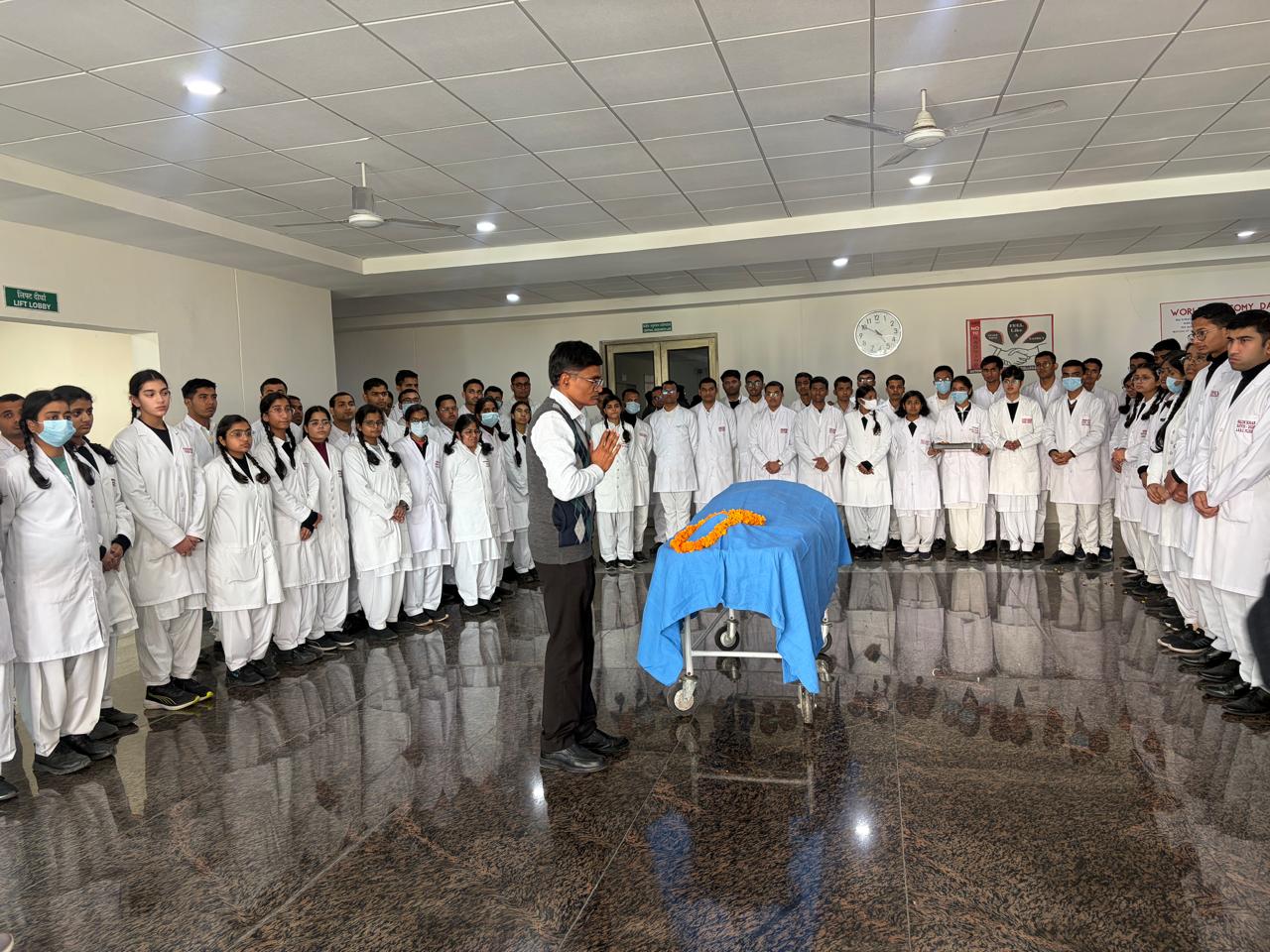 इस अवसर पर प्राचार्या डॉ. संगीता अनेजा ने बताया कि यह कॉलेज को प्राप्त पहला महिला शरीर है, जो चिकित्सा शिक्षा की दृष्टि से अत्यंत महत्वपूर्ण है। उपस्थित मेडिकल छात्रों ने भी पुष्प अर्पित कर देहदानी को श्रद्धांजलि दी।