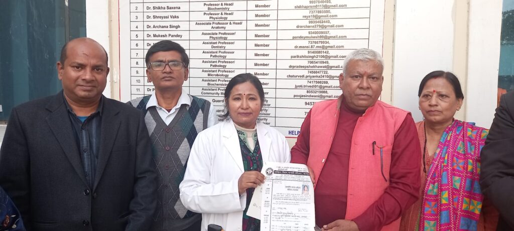 पीलीभीत। चिकित्सा शिक्षा और मानवता की सेवा को समर्पित युग दधीचि देहदान अभियान के अंतर्गत एक और प्रेरणादायी देहदान संपन्न हुआ। दुर्गादेवी रोड, गांधी नगर कानपुर निवासी 72 वर्षीय आशा तिवारी की पार्थिव देह को अभियान की 317वीं आहुति के रूप में राजकीय मेडिकल कॉलेज, पीलीभीत को समर्पित किया गया।