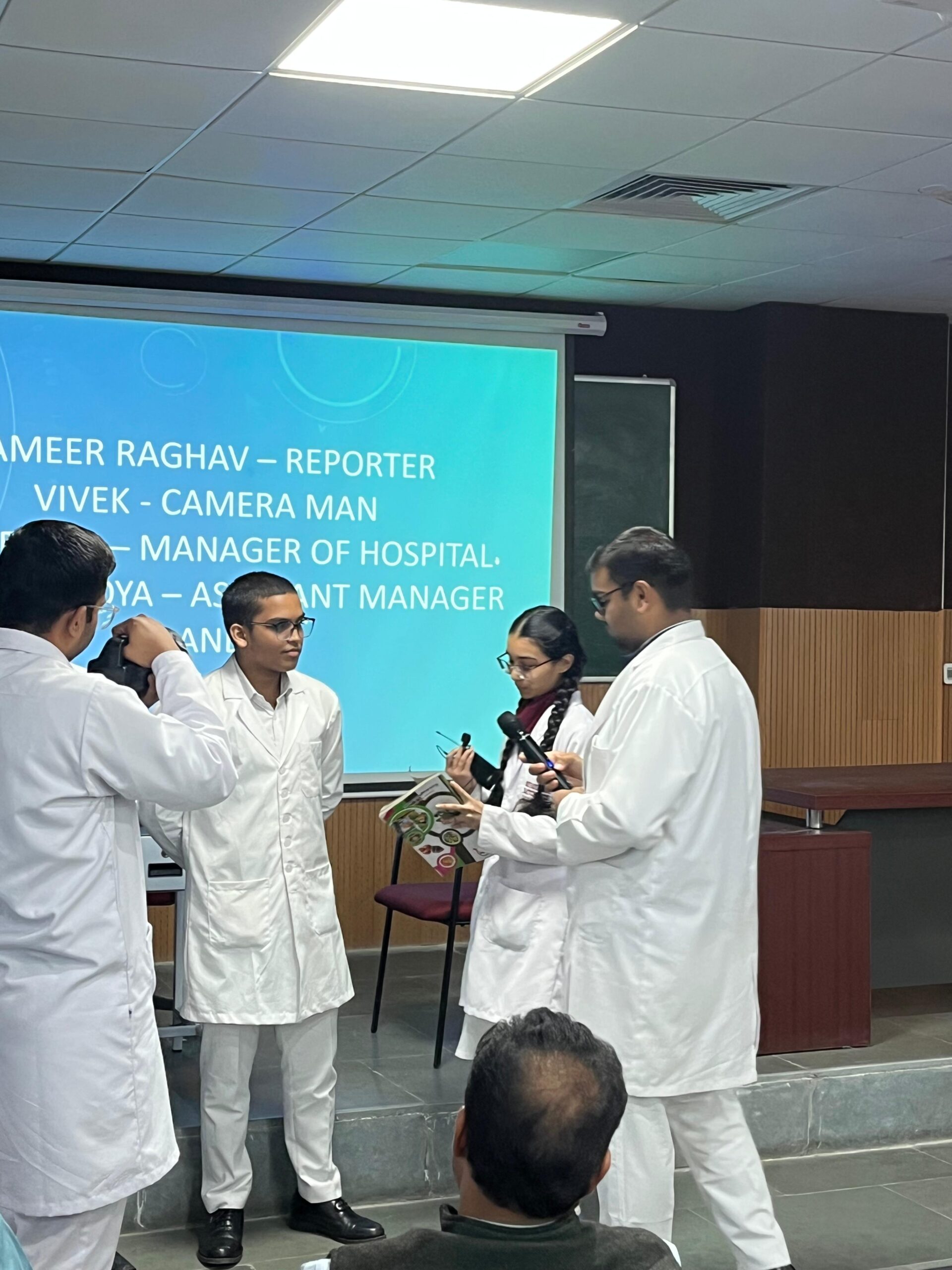 फिजियोलॉजी विभागाध्यक्ष डॉ. श्रीयसी ने कार्यक्रम का संचालन किया और छात्रों को रोल प्ले की शैक्षणिक उपयोगिता समझाई।