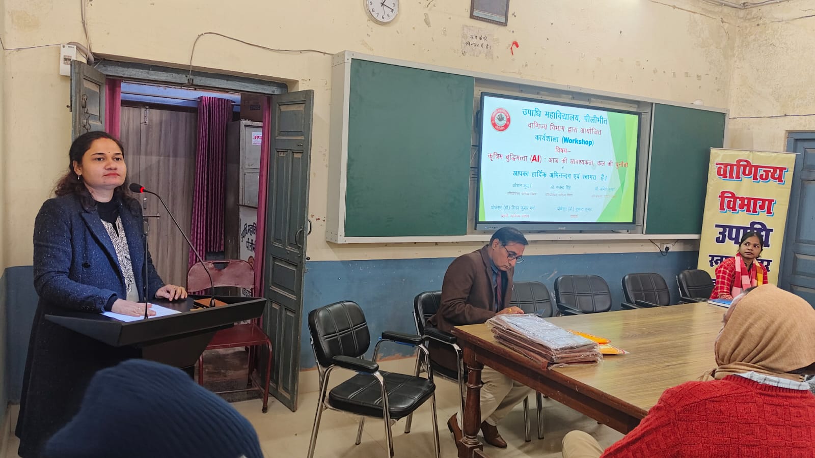पीलीभीत। उपाधि महाविद्यालय के वाणिज्य विभाग के तत्वावधान में “कृत्रिम बुद्धिमत्ता (AI)—आज की आवश्यकता, कल की चुनौती” विषय पर एक दिवसीय कार्यशाला का आयोजन महाविद्यालय सभागार में किया गया। कार्यक्रम का शुभारंभ अतिथियों द्वारा माँ सरस्वती के समक्ष दीप प्रज्ज्वलन कर किया गया। स्वागत उद्बोधन डॉ. अमित कुमार ने प्रस्तुत करते हुए कार्यशाला के उद्देश्य पर प्रकाश डाला।