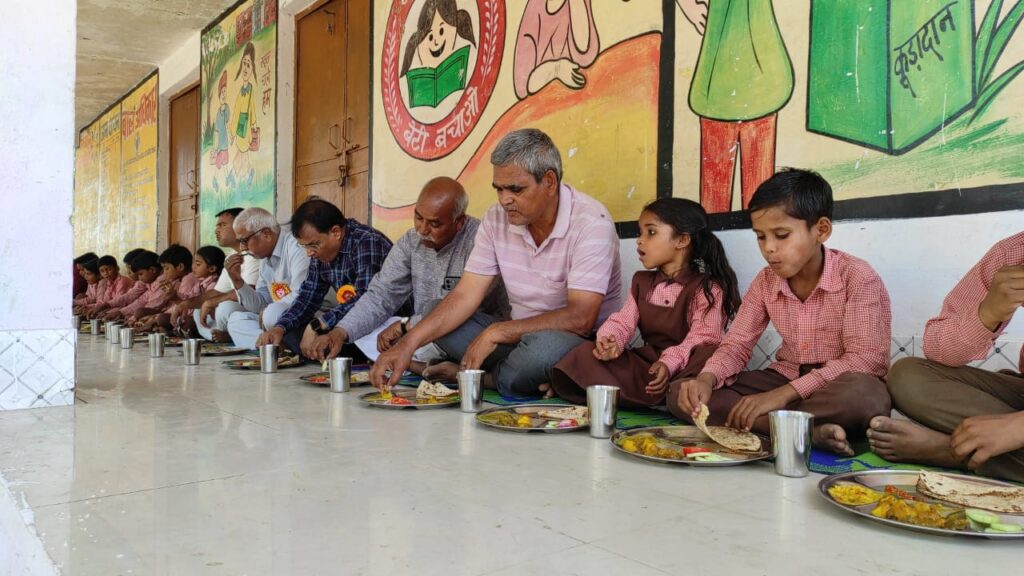 रैली के उपरांत सभी अतिथियों और शिक्षकों ने बच्चों के साथ पंक्तिबद्ध बैठकर मिड डे मील ग्रहण किया। इस दौरान स्वादिष्ट व्यंजन परोसे गए और बच्चों के साथ संवाद भी किया गया।