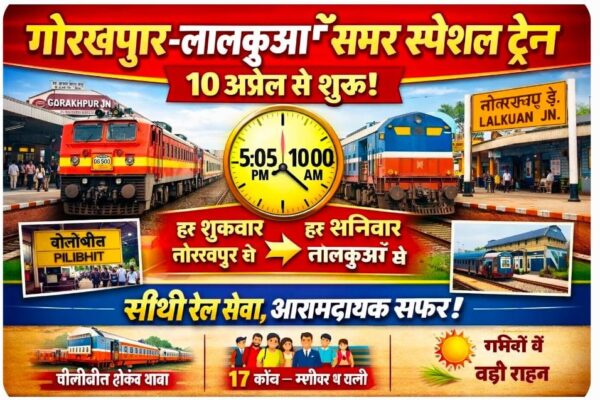 यात्री गण कृपया ध्यान दें….गोरखपुर-लालकुआँ समर स्पेशल ट्रेन 10 अप्रैल से होंगी शुरू